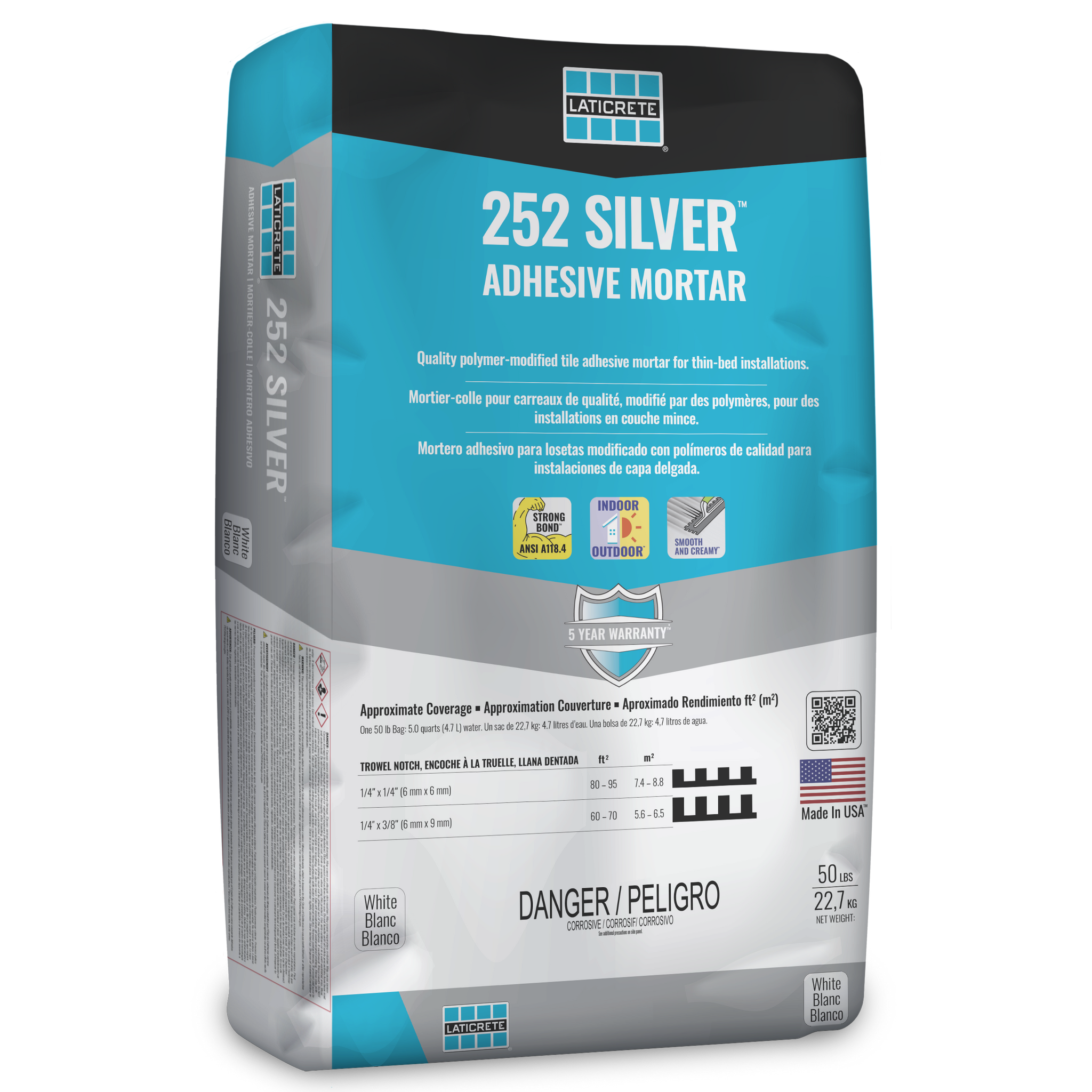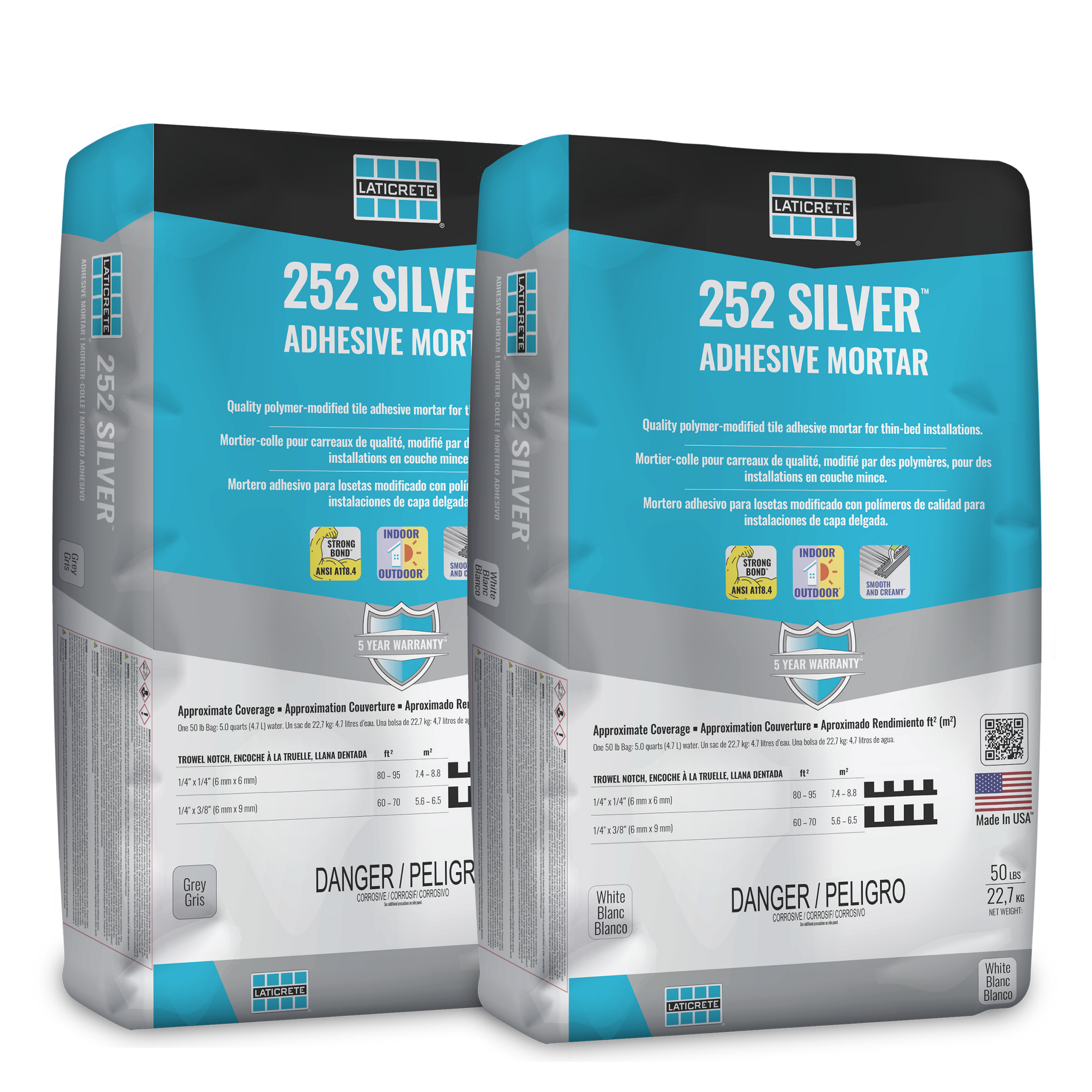 252 Silver is an economical polymer modified, bagged, cementitious thin-set powder to be mixed only with water using the thin-set method of installation.