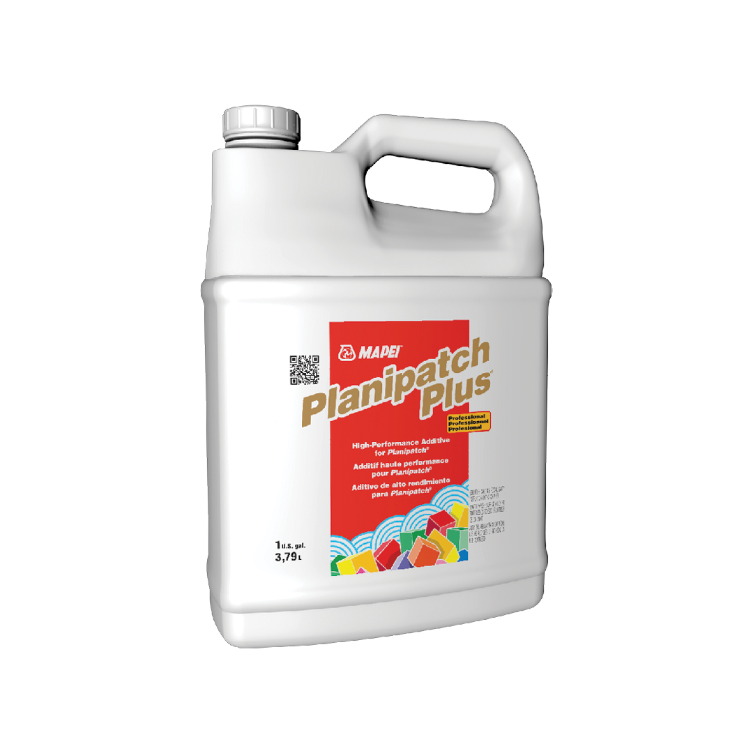 Planipatch Plus is an acrylic latex additive for use specifically with Planipatch fast-setting, polymer-modified, cement-based patching compound. Mixing Planipatch Plus undiluted with Planipatch allows it to be used over a variety of substrates including vinyl composition tile (VCT), felt-backed sheet vinyl, cutback adhesive residue and MAPEI moisture barriers.