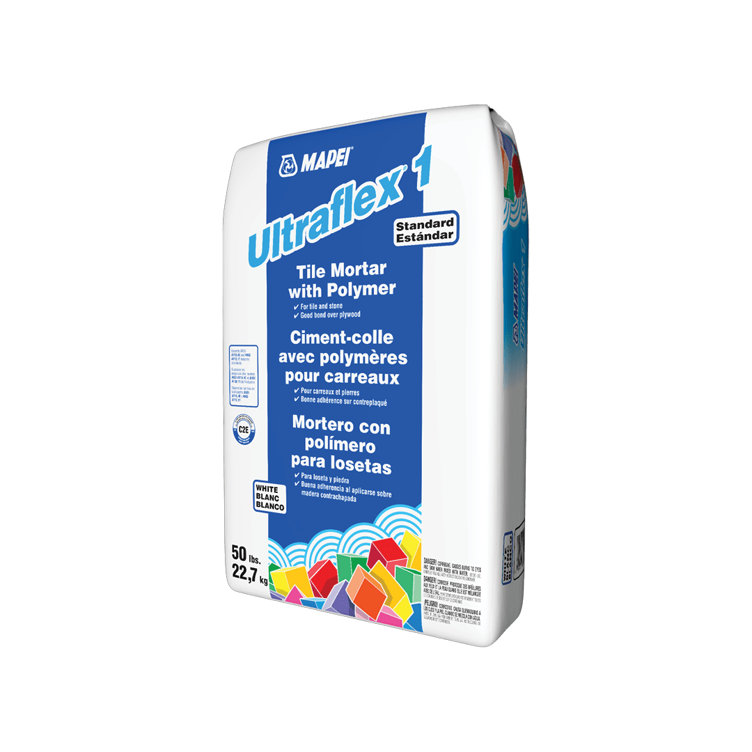 Ultraflex 1 is a standard-grade, single-component, polymer-modified thin-set mortar for most interior and exterior installations of tile. This mortar has an above average content of unique dry polymer, resulting in good adhesion to the substrate and tile. Ultraflex 1 can be used for both interior and exterior installations of tile in most residential floor and wall applications. In commercial applications, use on interior floor and wall installations and exterior floors. Ultraflex 1 meets or exceeds ANSI A118.4E and ANSI A118.11 requirements when mixed with water.